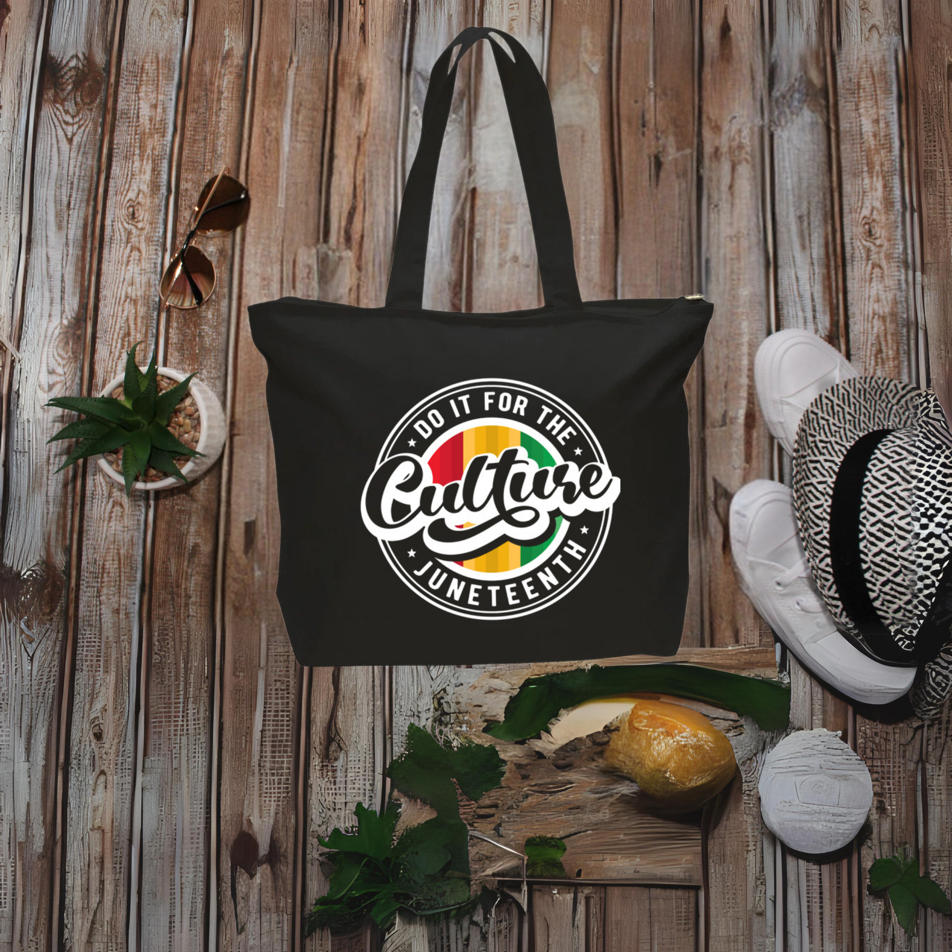 Stay organized in style with our For The Culture Juneteenth Canvas Tote, featuring multiple compartments to keep your essentials in perfect order.