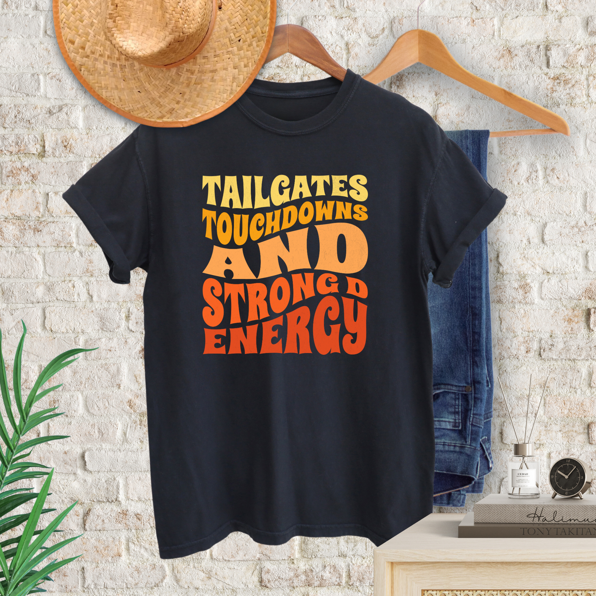 Show your friends you are ready for Game Day in our Champion premium Tailgates, Touchdowns, and Strong D Energy T-Shirt. You will be Game Day Fresh all year round in this T-Shirt!!!